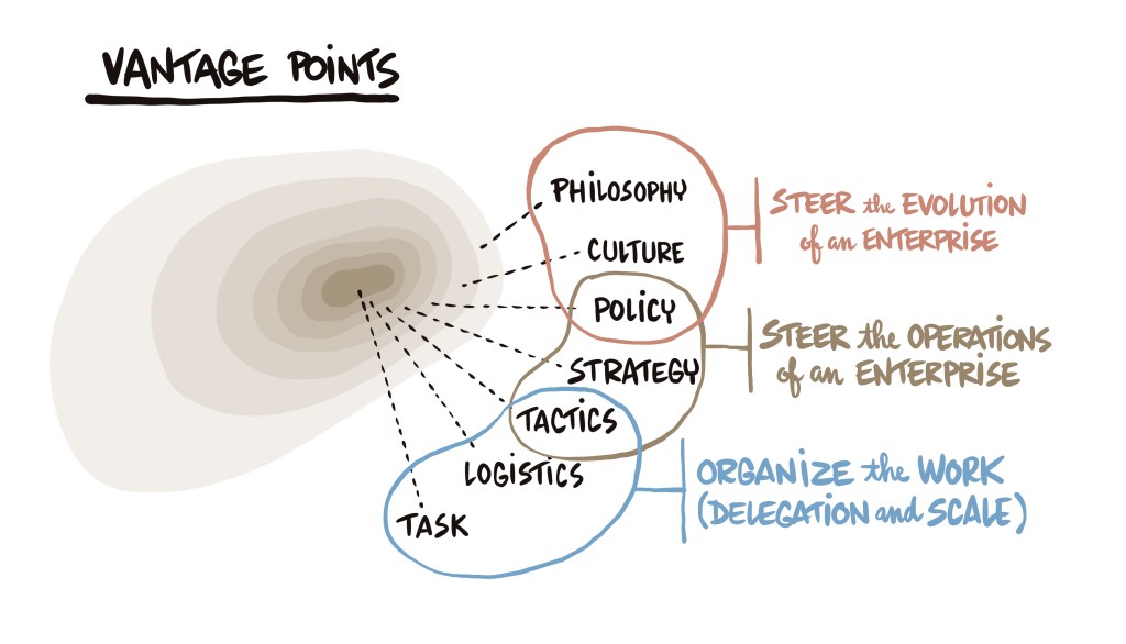Each vantage point is valid. Most problems cannot be solved only from a single vantage point. When you change perspectives – get a new vantage point – this is often the key to creating new solutions.