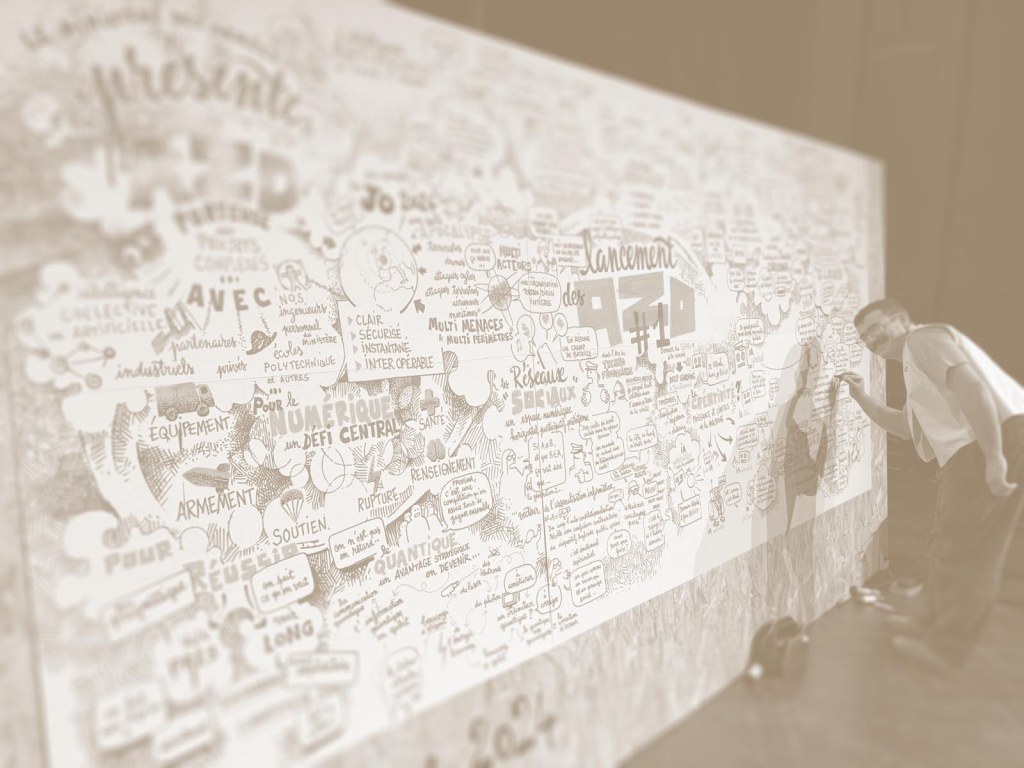 And it’s always visual. We use graphic facilitation and live scribing not as decoration, but as a cognitive and emotional anchor. People remember what they see. They trust what they can point to. And they align around what becomes real on the wall.